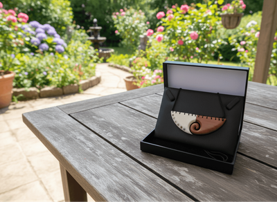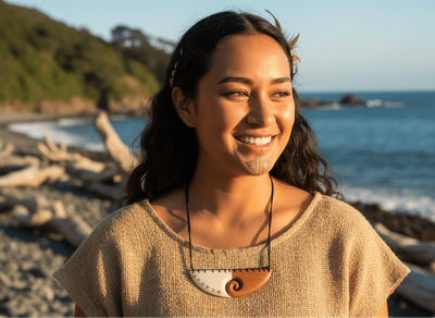 Hand-carved from bone, wood and Pāua shell, carrying a Koru for life, renewal and connection. Worn on a black plaited wax cord, this Taonga symbolises protection, strength and spiritual guidance.
