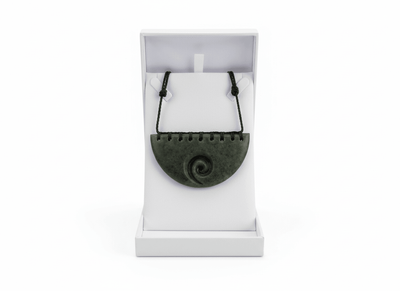 This handcrafted Pounamu (Greenstone) Kōpaki (breastplate) is shaped with care and intention, honouring the traditions of Te Ao Māori (The Māori World). A finely carved Koru (spiral) is incut into the centre of the Kōpaki, symbolising Whakatipu (growth), Whānau (connection), and the continuous unfolding of life’s journey. The Koru brings a sense of renewal and grounding to the wearer, reminding them of beginnings, balance, and the steady return to one’s centre.